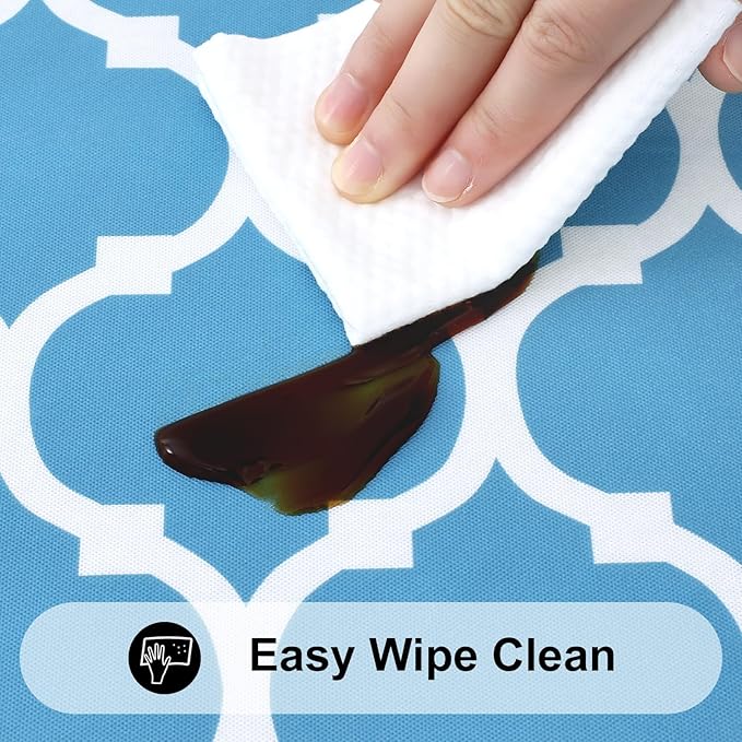 - [Waterproof & Wipe Clean] Our table cover surface is made of selected vinyl material, which can effectively waterproof. Spill proof coating makes tablecloth easy to clean, just wipe it off with a damp sponge or rag in a minute.