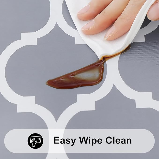 - [Waterproof & Wipe Clean] Our table cover surface is made of selected vinyl material, which can effectively waterproof. Spill proof coating makes tablecloth easy to clean, just wipe it off with a damp sponge or rag in a minute.