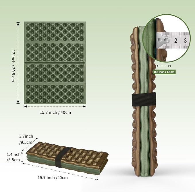 - ๐๐จ๐ซ๐ญ๐๐๐ฅ๐ ๐๐ข๐ณ๐: The sitting pad open size is 15.7x12.0x0.6 inches, folded size is 15.7x3.7x1.4 inches, and weighs only 1.7oz. The foam seat cushion adopts a folding accordion-style structure, making it easy to carry when you go out.