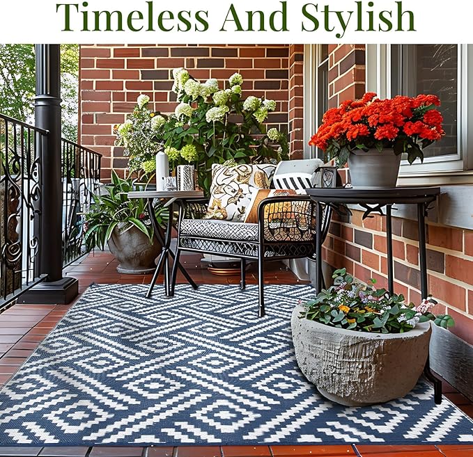 - Double-Sided Style, Double the Life: Flip this outdoor patio rug to reveal two chic patterns. The darker side hides dirt effortlessly, while keeping colors vibrant for years. Outdoor rug durability shines in high-traffic areas