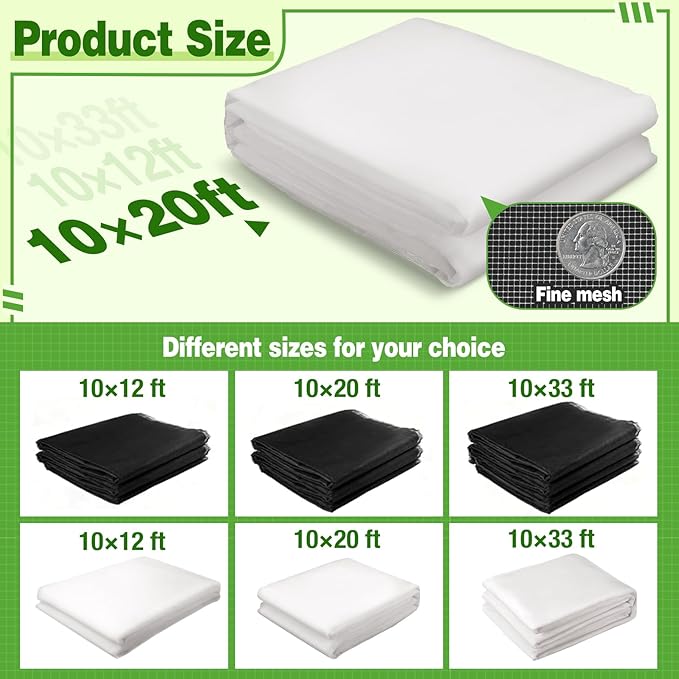 - Ultra-fine Garden Screen: The dense mesh design makes it ideal for summer use in beds, balconies, porch, window, or patios. It's also perfect for garden application, safeguarding your plants from birds and other animals.