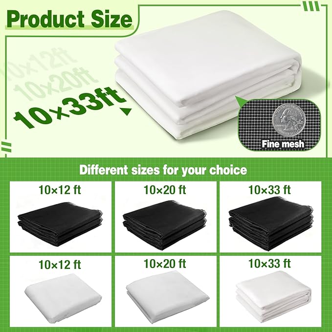 - What You'll Receive: You'll get a sizable white garden net barrier with dense mesh, measuring 10ft x 33ft. Its large size allows for easy customization into various shapes to suit your needs.