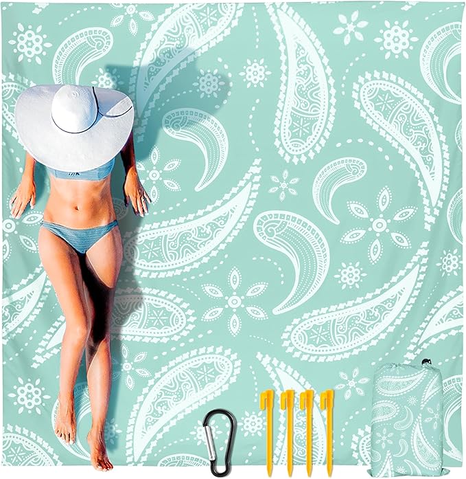 - 🌴【Lightweight Beach Items】79"*83" beach blanket oversized, weighted 0.71 lbs, fit 1-3 adults, and they can be easily folded into a 5.1"×7.5" carry bag.