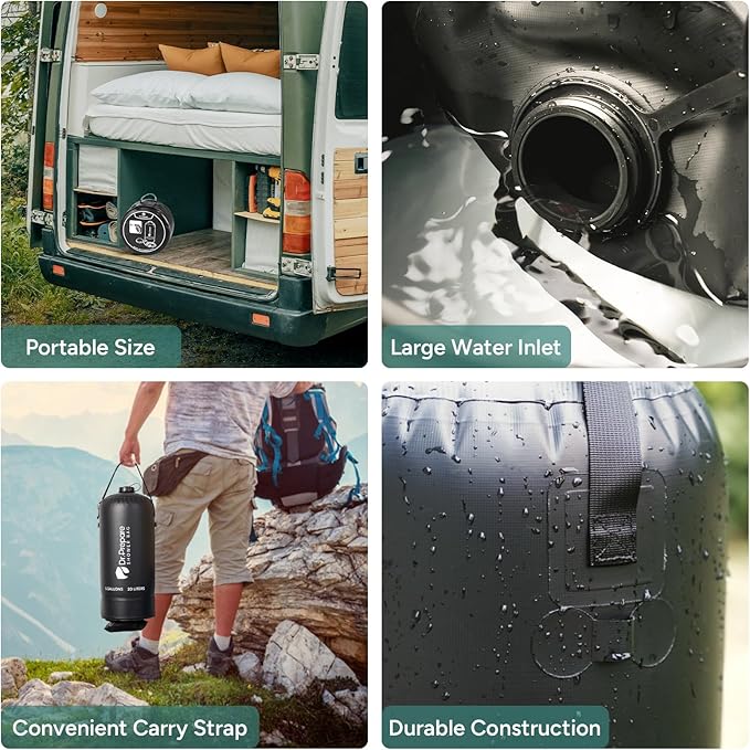 • [Durable and Reliable] Crafted from thick and robust PVC, this camping shower bag is designed for prolonged use, even in harsh environments. The tightly bonded connections and the thicker PVC ensure heightened strength and durability, outperforming others on the market.