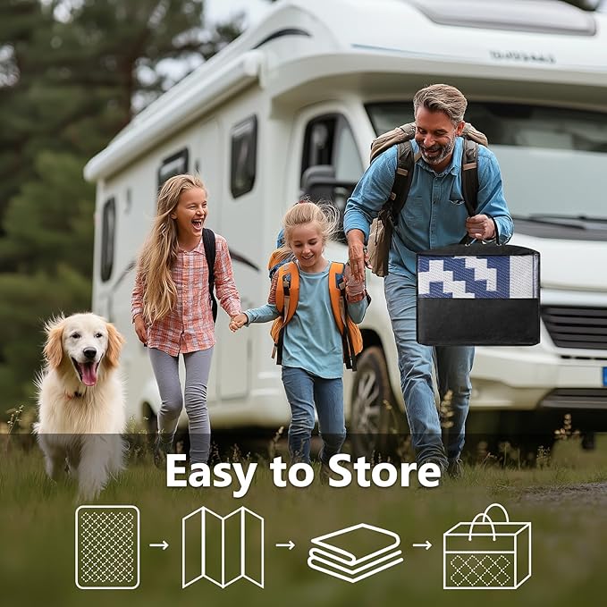 - LIGHTWEIGHT & EASY STORAGE: Store this balcony rug in seconds! It rolls up as slim as a yoga mat and fits in tight spaces. Perfect for RV trips, apartment balconies, or tossing in your camping gear.