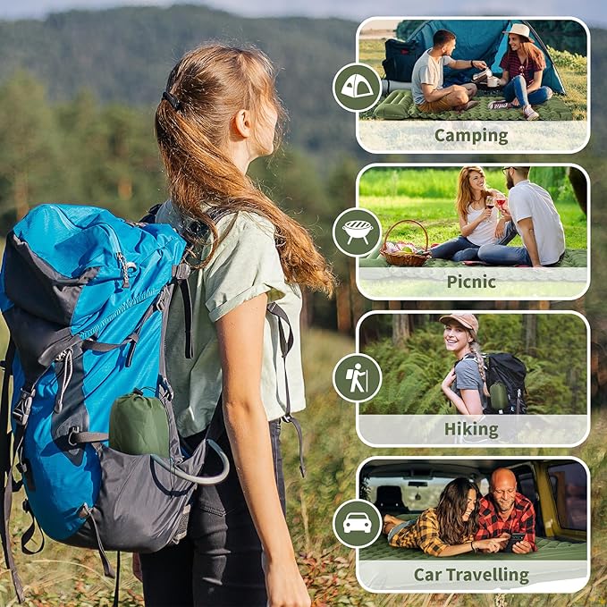 - Lightweight & Portable: Weighing only 1.9 lbs., this ultralight sleeping pad is perfect for camping, backpacking, and hiking. Measures only 11in x 4.7in after storage, easily fitting into a backpack. The integrated pillow eliminates the need for extra one