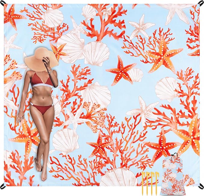 - Good for Beach Lovers: Add a touch of oceanic charm to your beach days with our beach blankets featuring coral, shell, and starfish patterns. Whether you're watching the sunset, relaxing, or enjoying a picnic, these beach mats offer a cozy and stylish seaside experience