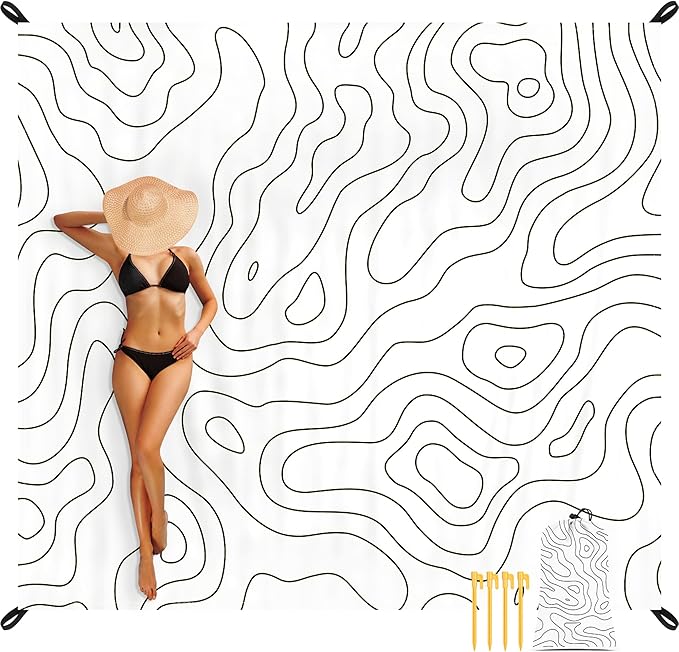 Beach Blanket, 78”x 86” Waterproof Sandproof Beach Mat with 4 Stakes & Portable Bag, Big Large Sand Free Outdoor Pockets Picnic Blanket for Festival, Camping