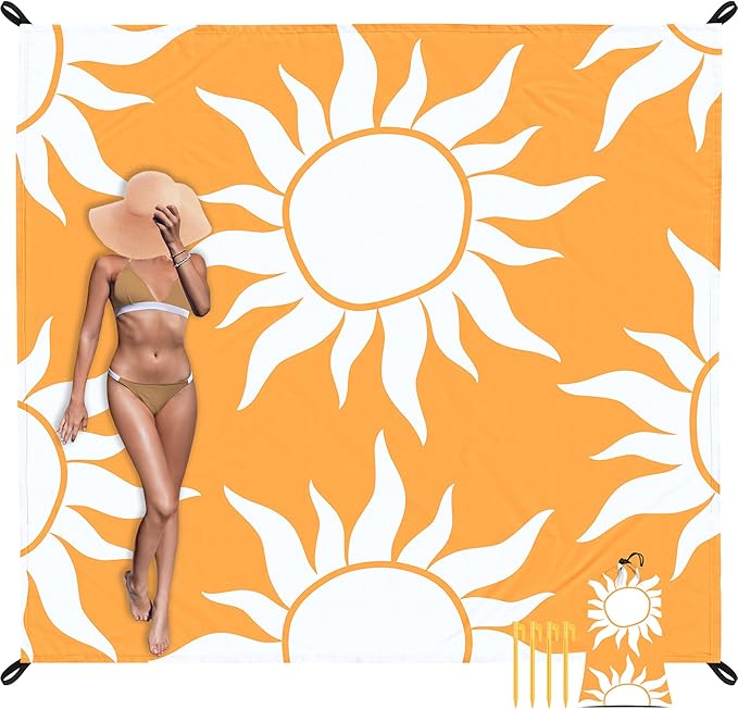 - Boho Sunrise Design: Elevate your outdoor style with Skynature's vibrant beach blanket, featuring a stunning orange and white bohemian sunrise print. The bold, artistic design adds a free-spirited flair to beach days, picnics, and festivals—perfect for those who love boho-chic aesthetics.