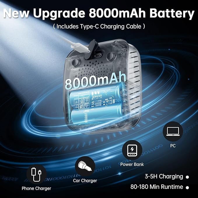 - 【Upgraded 8000mAh Battery, Extended Runtime】 This camping shower pump is equipped with a high-capacity 8000mAh battery for up to 180 minutes of continuous use. With Type-C charging port, it supports multiple charging methods, which can be charged by cell phone adapter, mobile power, laptop and car USB. The charging port is equipped with a silicone waterproof cover to ensure safe use.