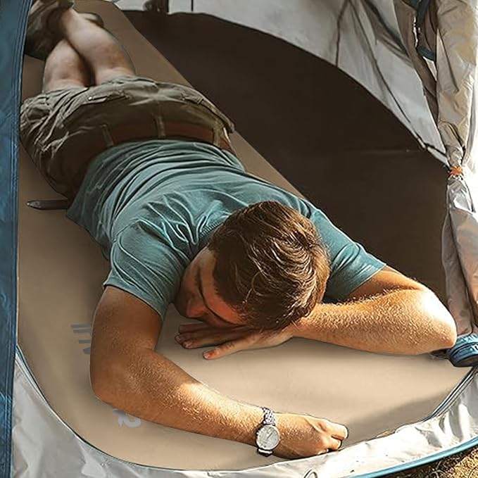 - 【Effortless Selfinflation, Instant Comfort】Simply open the double valve and let the high-density foam core work its magic! This self inflating sleeping pad requires no pump, no mouth, no feet—just relax while it preps your cozy retreat. Perfect for campers who value convenience and efficiency.(Note:The first use is in the vacuum machine compression state, which may take longer, and subsequent uses will be faster.)