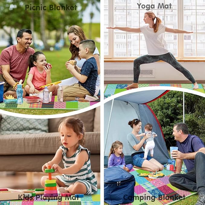 - Lawn blanket can play an effective role in indoor activities,like indoor playing mat, baby's crawling blanket, pet rugs. Also, there is a pocket in each of the four corners of the picnic mat, you can put some small stones inside to ensure windproof effectiveness.So it can be used outdoors like tent moisture-proof mat, picnic mat, beach mat. Definitely a necessary item for every family.