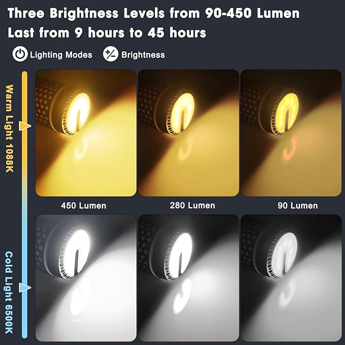 - Stepless Dimming, Adjustable Brightness & 180° Rotatable Light Head--- Designed for ultimate flexibility, this detachable camping lantern features stepless dimming, allowing you to fine-tune the brightness from 90 to 800 lumens. The 180° rotatable light head lets you direct the beam exactly where you need it, whether it's tent lighting, workspaces, or outdoor cooking. This makes it the perfect choice for any camping adventure or emergency situation.