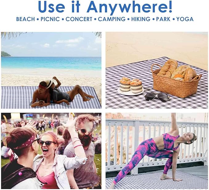 - MULTIFUNCTIONAL: This portable outdoor blanket can be used as a beach mat, camping blanket, family mat, RV blanket, emergency blanket. Not just outdoor blanket, it also serves as floor mat, kids playing mat, pet seat cover, a great item for every family