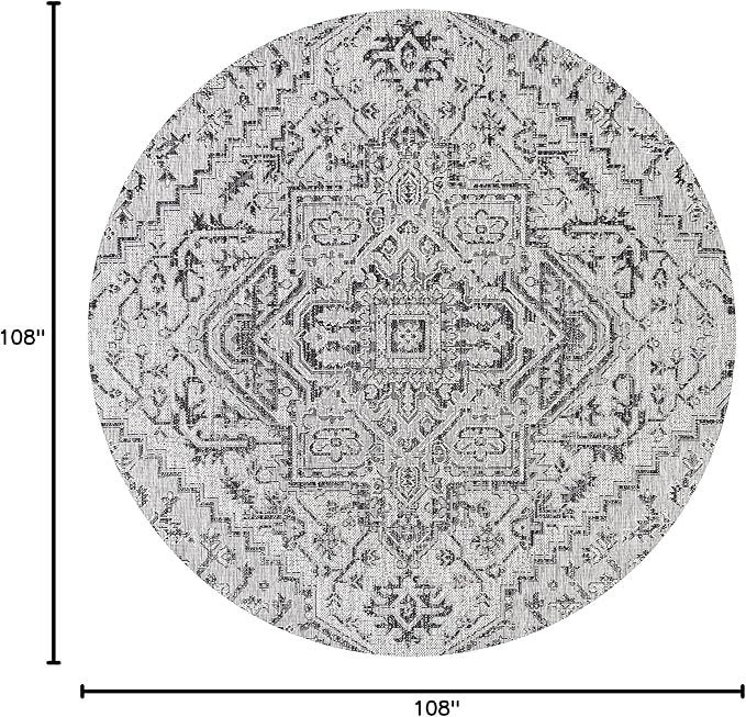 JONATHAN Y SMB105D-9R Estrella Bohemian Medallion Textured Weave Black/Gray 9' Round Indoor/Outdoor Area Rug, Pet Friendly, Non-Shedding, Stain Resistant, Easy-Cleaning for Backyard, Patio, Porch