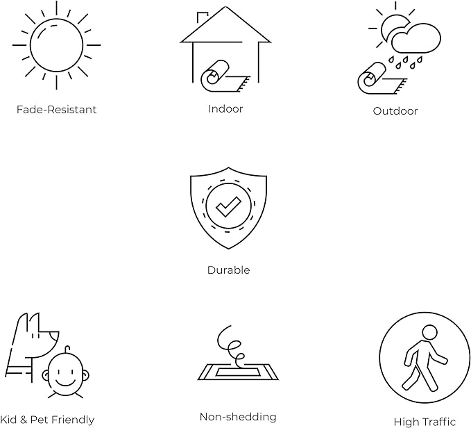 - Durable & Water-Resistant: The flat-weave construction of 100% polypropylene provides water resistance and a 0.19-inch pile, making it ideal for indoor and outdoor use.