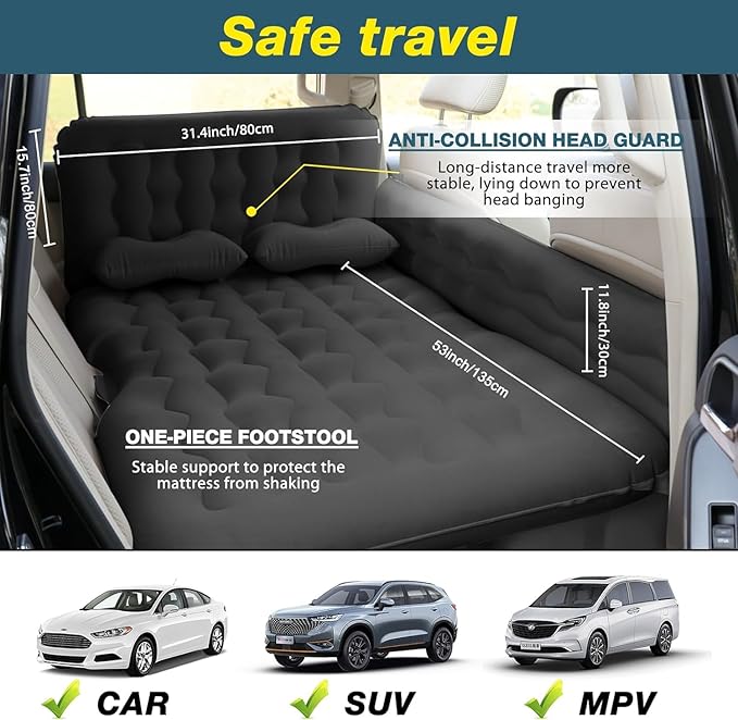 - 【Suitable for Most Vehicle and Scenes】Adapted to a variety of models suv air mattress suv mattress camping bed, small cars, SUVs, trucks, can be used in the back seat of the car, trunk, indoor, garden, camping, picnics, travel and many other scenes.
