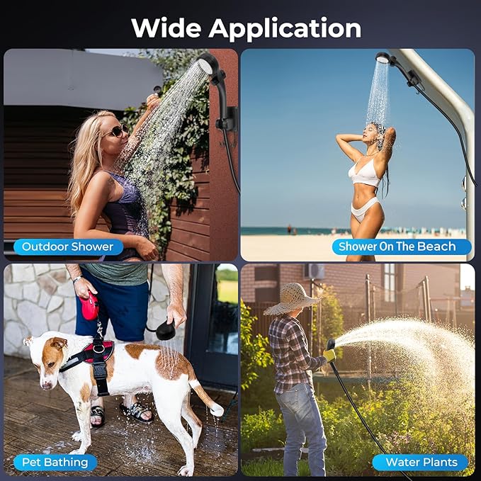• 【Great Gift for Outdoor Enthusiasts】Outdoor Shower kit includes 1x Shower Pump, 1x Output Hose, 1x Shower Head, 1x Shower Balls, 1x Storage Bag, 1x 20L Folding Bucket, 3x Suction Cups, 1x Charging Cable, 1x Instruction Manual. Perfect for showering, camping, barbecuing, hiking, beach, traveling, bathing, pet bath, car wash, plant watering and more indoor and outdoor use. It provides convenience for all outdoor needs and makes a great gift for outdoor enthusiasts