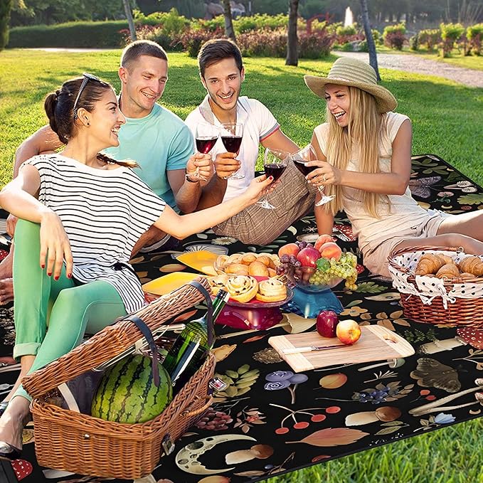 Extra Large Picnic Blankets Waterproof Foldable (80"x 80") Mushroom Beach Blanket Waterproof Sandproof,3-Layer Thicking Mat Outdoor Packable Camping Blanket