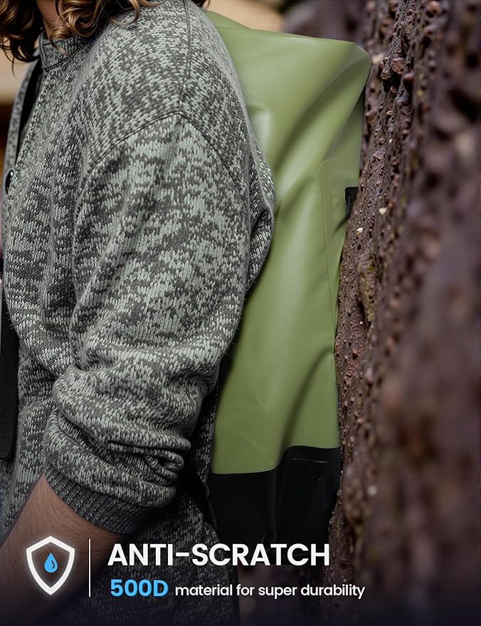 - Built to Last - This 20L dry bag is engineered for maximum durability without the bulk. Crafted from high-quality, scratch-resistant materials and reinforced with precision stitching, it’s designed to survive rough handling, abrasions, and daily adventures. Featuring heavy-duty buckles, reinforced shoulder straps, and corrosion-resistant zippers built for long-term use, this green dry bag is tough enough for rugged conditions but easy to carry for hikes, beach days, or travel.