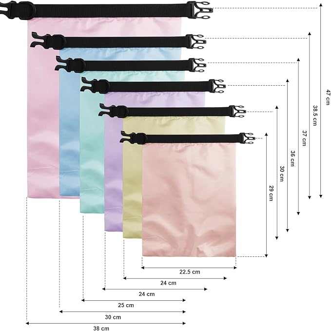 - Ample amount: the package includes 6 pieces of waterproof dry bags, including the capacity of 15 L, 8 L, 5 L, 4 L, 3 L and 2 L, 2 pieces of long adjustable shoulder straps (15 L and 8 L may need to use), different sizes and colors are prepared to satisfy your various needs