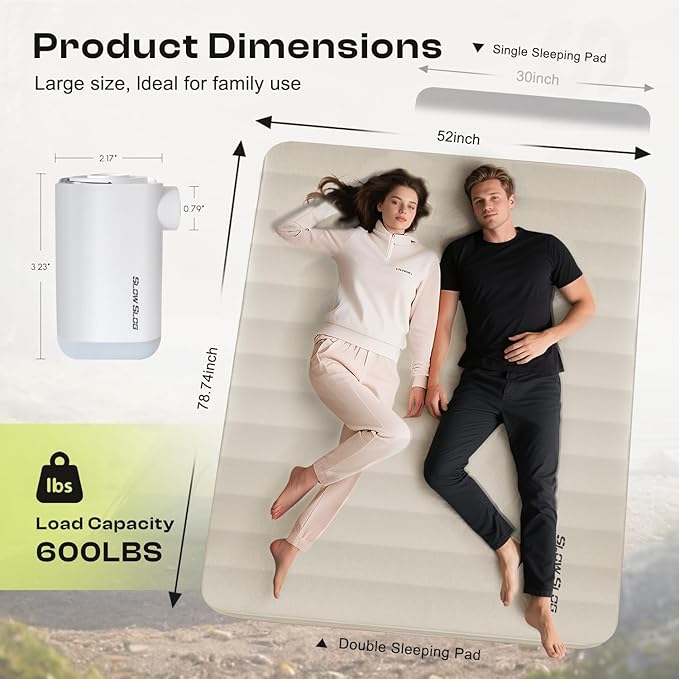 - Ultimate Comfort and Support: This 2 person sleeping pad features a 4-inch thickness and high-density foam filling, providing exceptional support and comfort for all body types. With a weight capacity of up to 660 pounds, it evenly distributes pressure points, ensuring a restful sleep. Perfect for camping, road trips, or as a guest bed at home