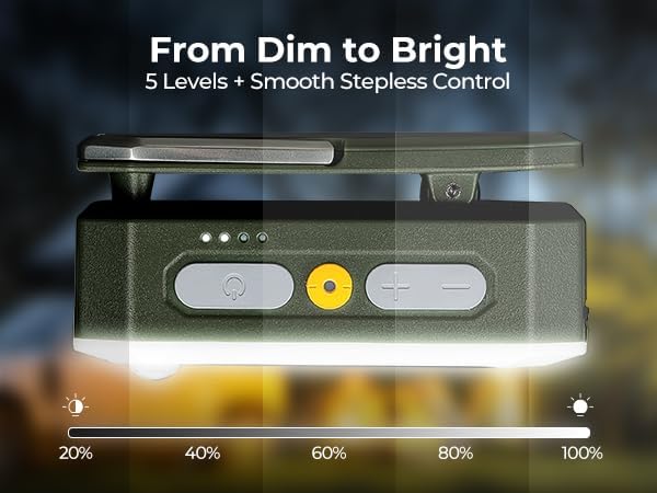 - 5 Levels Adjustable Brightness : This camping light offers a total of 5 different brightness settings. Besides, it is equipped with separate brightness and lighting mode adjustment buttons, which are convenient to use