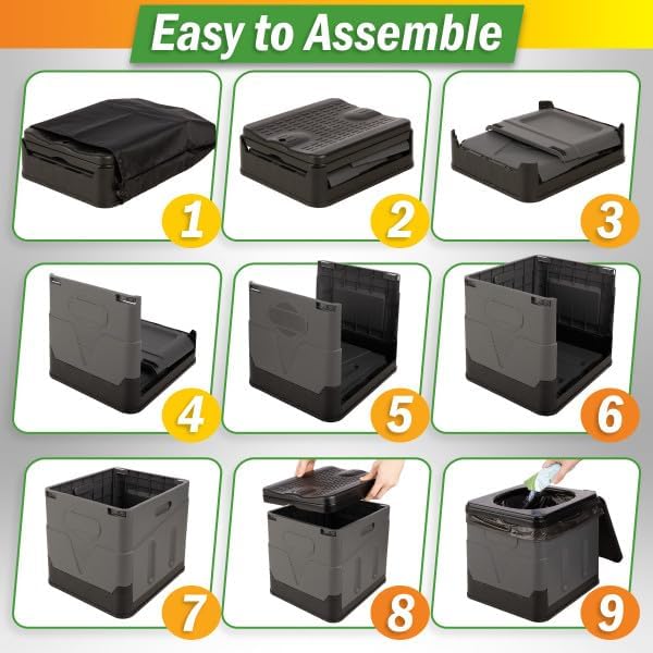- PORTABLE TOILET FOR CAMPING - This portable potty for adults is a must-have addition to your camping gear. The camp toilet comes with (12) 25-liter toilet bags and 12 packs of biodegradable lemon-scented deodorizer gel to control smells.